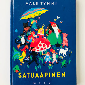 Kirjahyllystäni löytyy tämä soma Satuaapinen. Tämmöisen Satuaapisen sain tädiltäni lahjaksi, kun täytin 4 vuotta. Kirjasta opettelin lukemaan ja kirjoittamaan. Minulla on jopa mielikuva, että istuin ulkona portailla ja tavasin kirjasta sanoja. Luulenpa, että tätini opetti minua, sillä hän asui meidän yläkerrassamme. Taisin olla innokas oppilas, sillä osasin lukea suoraan ja kirjoittaa kaunokirjoitusta, kun menin kouluun 6-vuotiaana. Aika monen Satuaapisen lorun osaan edelleen ulkoa. Kirjan on kuvittanut suloisilla kuvilla Maija Karma. Kirjan loppuun Aale Tynni on laittanut ohjeita lasten vanhemmille ja opettajille. Yksi ohjeista on seuraava: